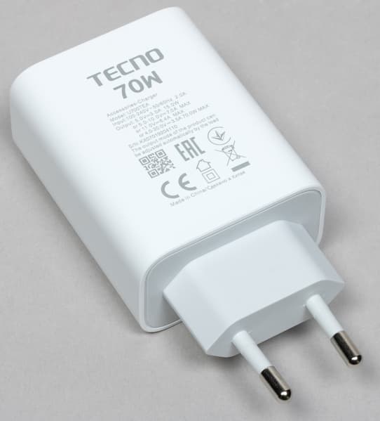 От комплектного сетевого зарядного устройства мощностью 70 Вт смартфон заряжается за 50 минут. Беспроводная зарядка не поддерживается.