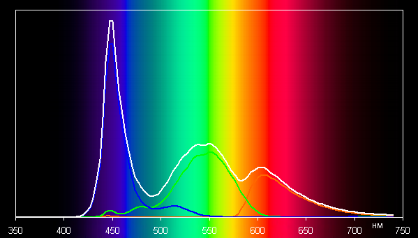 Спектры показывают, что светофильтры матрицы в умеренной степени подмешивают компоненты друг к другу: