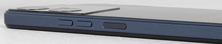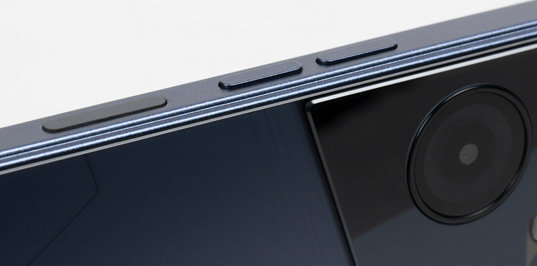 Боковые клавиши крупные, расположены на положенных им местах на одном боку. Любопытно, что для регулировки громкости используется не качелька, а две раздельные кнопки. Сканер отпечатка пальца тоже установлен сбоку — врезан в плоскую поверхность клавиши питания и блокировки. Срабатывает сканер быстро и четко.