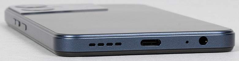 Верхний торец совершенно пуст. На нижнем торце установлены динамик, микрофон, разъем USB Type-C и 3,5-миллиметровый аудиовыход.