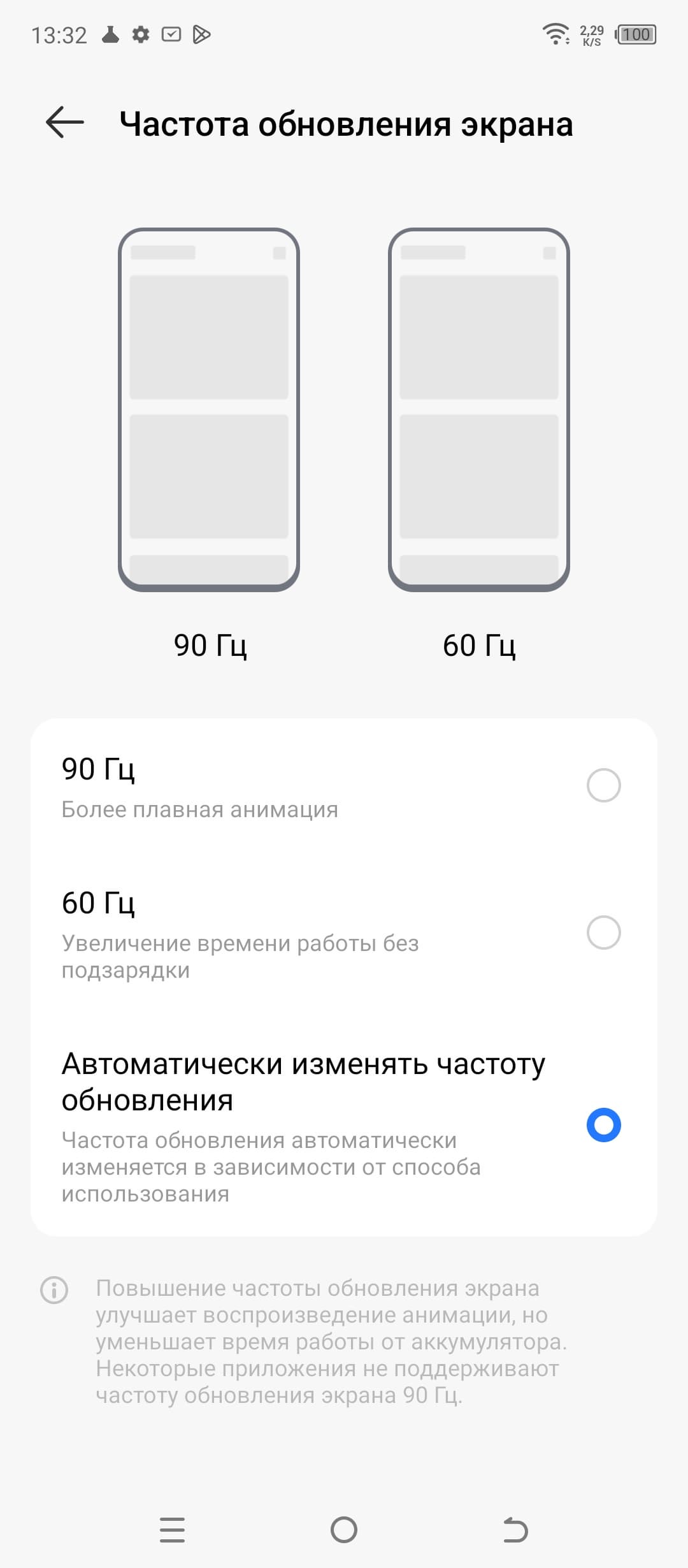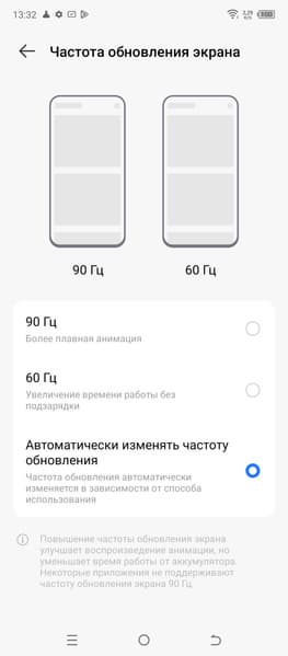 В настройках экрана можно включить режим с повышенной до 90 Гц частотой обновления, что приводит как минимум к увеличению плавности прокрутки списков в меню.