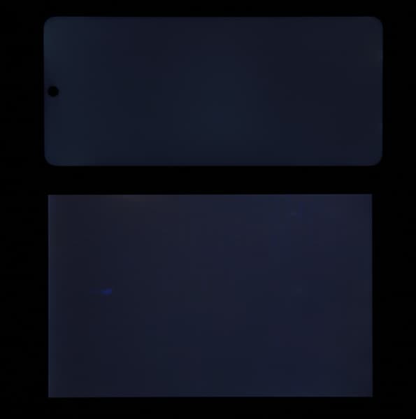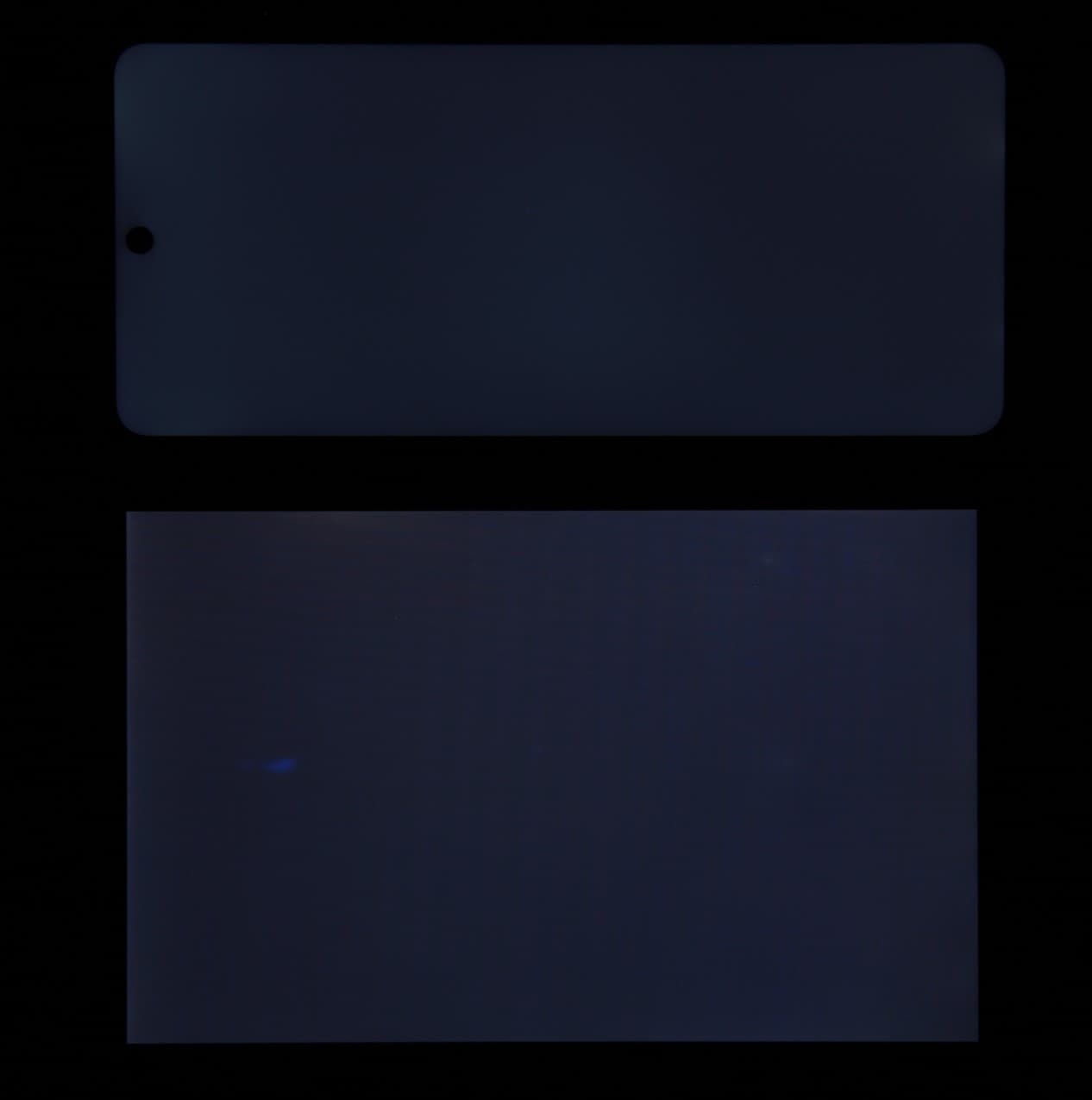 При перпендикулярном взгляде равномерность черного поля средняя (для наглядности яркость подсветки на смартфоне установлена на максимум):