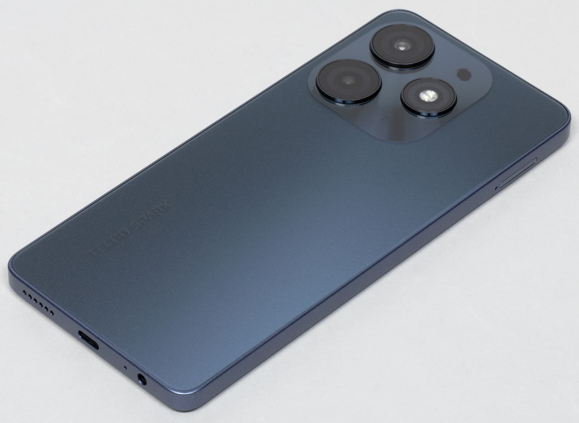 По заверениям представителей компании, спинка смартфона выполнена из стекла, в то время как боковая рамка пластиковая. Все поверхности матовые, без глянца. Смотрится Tecno Spark 10 Pro строго, стильно, явно дороже, чем есть на самом деле. Внешность его настолько универсальна, что подойдет к любому костюму и к любой обстановке.