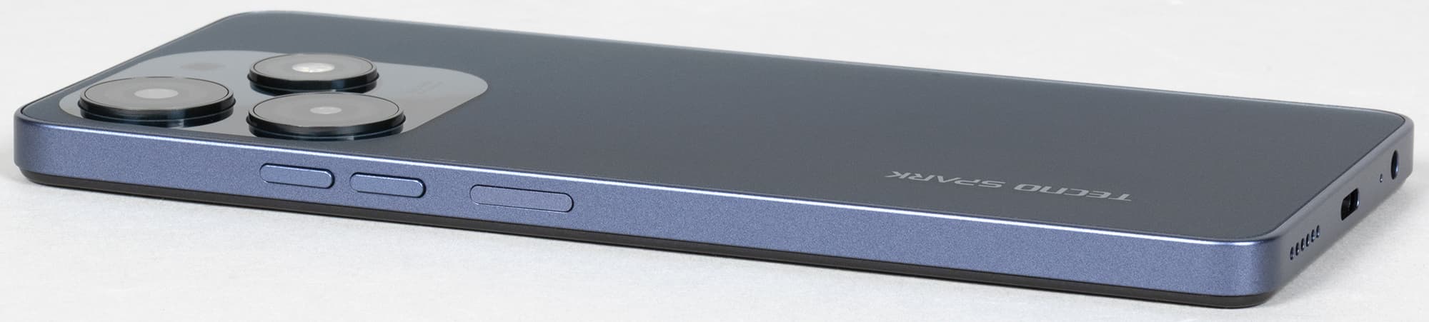 Корпус Tecno Spark 10 Pro выполнен в современном дизайне с широкими боковыми гранями и плоскими панелями, без зауженных боковин и загнутых краев. Копия современного iPhone. Дизайн лаконичный и симпатичный. Практичный корпус без скользких обводов и зауженных граней хорошо удерживается в руке, не прокручивается в ладони и не выскальзывает из пальцев. Ребра боковых граней в ладонь не врезаются.