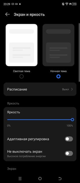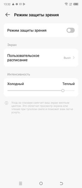 Также присутствует настройка, позволяющая снизить интенсивность синей компоненты.