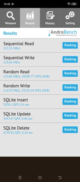Тестирование традиционно проводилось на обычном уровне энергопотребления без использования функций энергосбережения, хотя таковые в аппарате имеются. Условия тестирования: выставлен минимальный комфортный уровень яркости (примерно 100 кд/м²). Тесты: беспрерывное чтение в программе Moon+ Reader (со стандартной, светлой темой); беспрерывный просмотр видео в HD-качестве (720р) через домашнюю сеть Wi-Fi; игра Injustice 2 с автонастройками графики.
