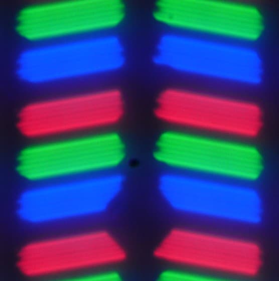 В данном смартфоне используется матрица типа IPS. Микрофотографии демонстрируют типичную для IPS структуру субпикселей: