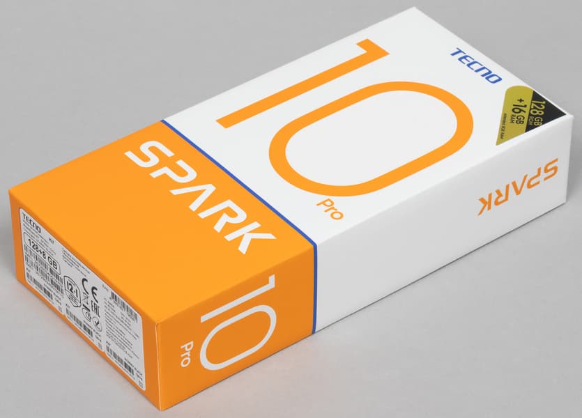 Tecno Spark 10 Pro поставляется в твердой картонной упаковке со спокойным минималистичным оформлением.