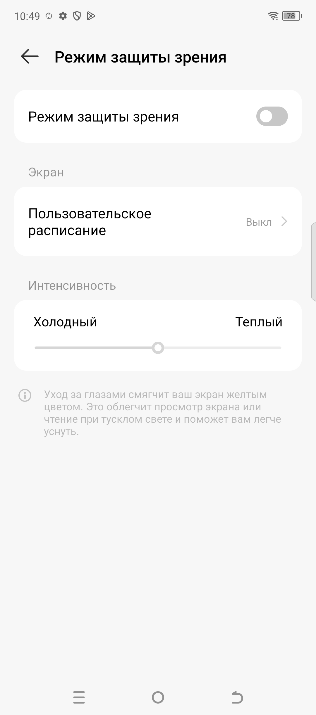 Разумеется, присутствует настройка (Режим защиты зрения), позволяющая снизить интенсивность синей компоненты. В принципе, яркий свет может приводить к нарушению суточного (циркадного) ритма (см. статью про iPad Pro с дисплеем 9,7 дюйма), но все решается снижением яркости до низкого, но еще комфортного уровня, а искажать цветовой баланс, уменьшая вклад синего, нет абсолютно никакого смысла.