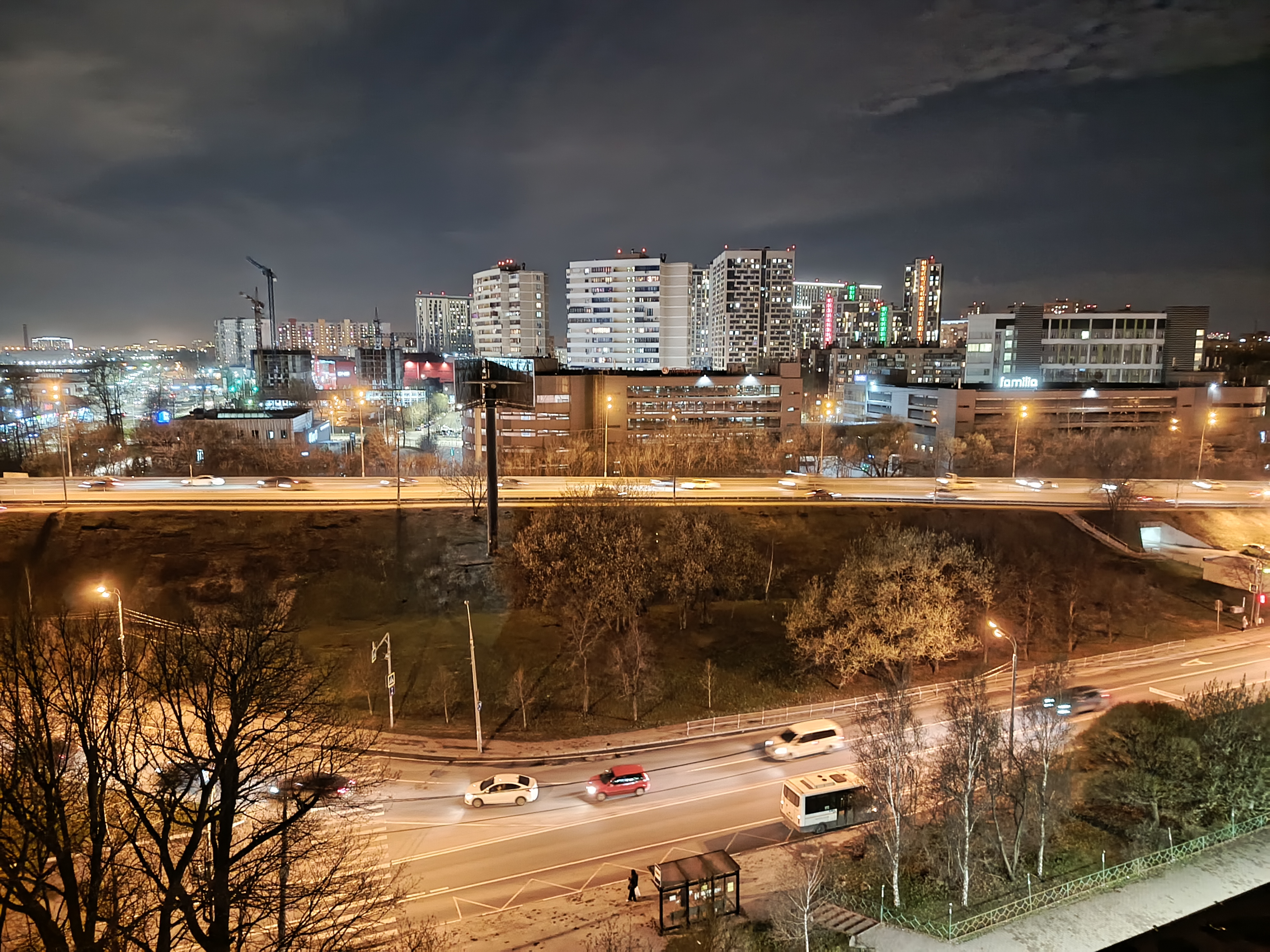 В ночном режиме экспозиция снова задрана, но сенсор уже не справляется, так что детализация оказывается слабой, хотя шумы автоматика более-менее успешно затирает (вместе с мелкими деталями).