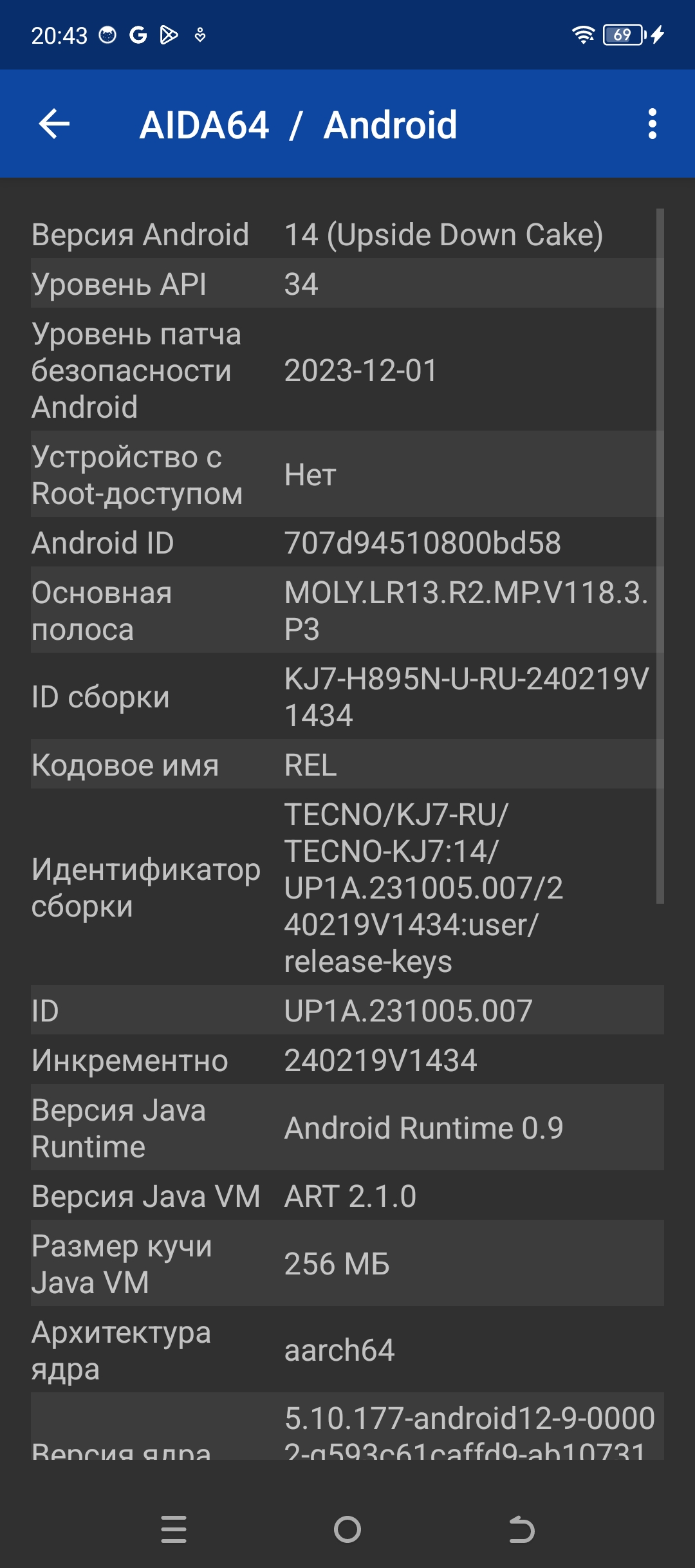 - Операционная система Android 14