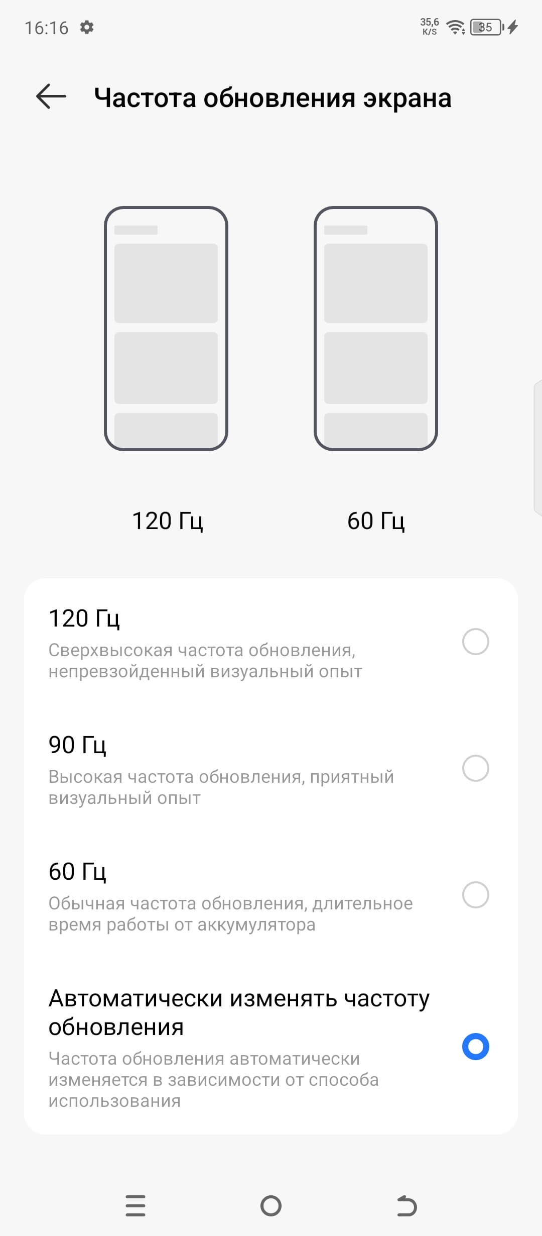 В настройках экрана можно включить режим с повышенной до 90 или 120 Гц частотой обновления, что приводит как минимум к увеличению плавности прокрутки списков в меню.