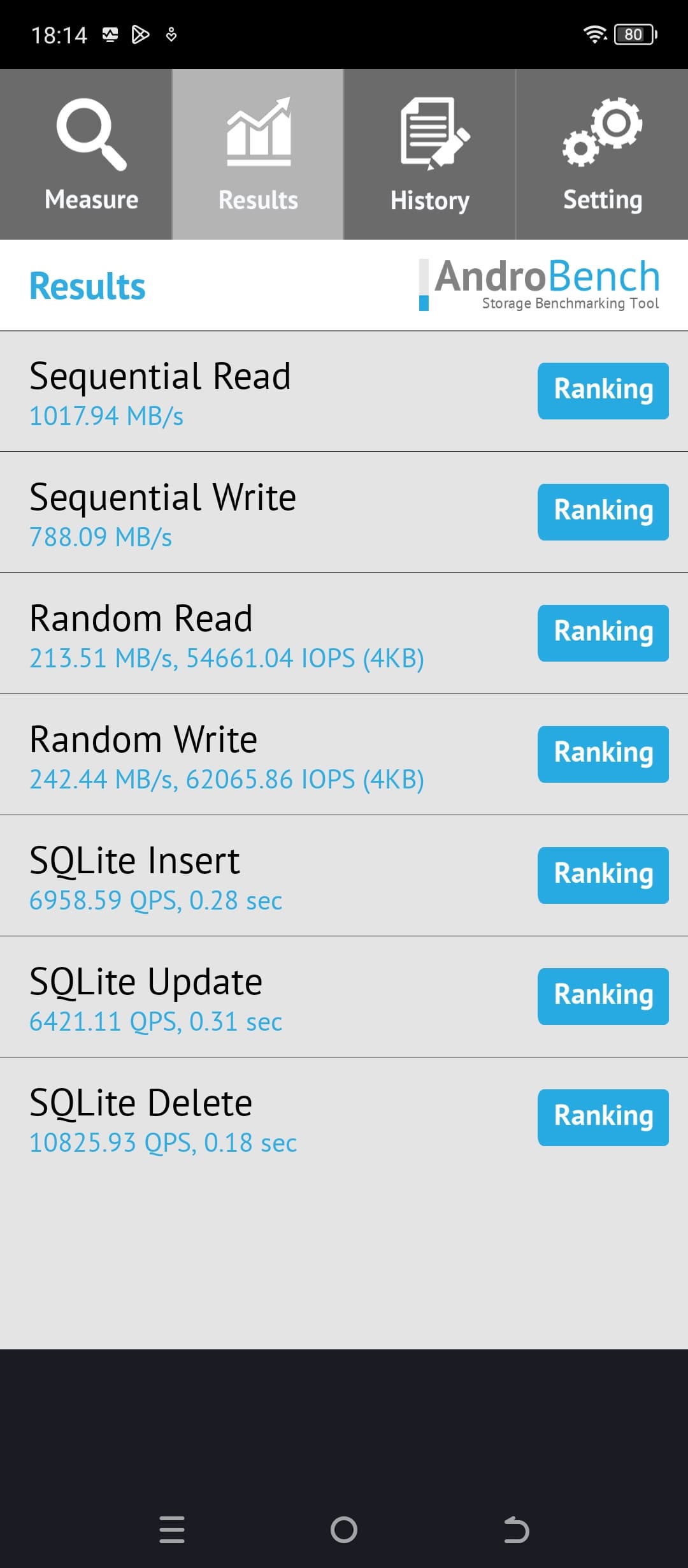 | AnTuTu (v9.x) (больше — лучше) | 383125 | 683485 | 602528 | 536193 | 397188 |