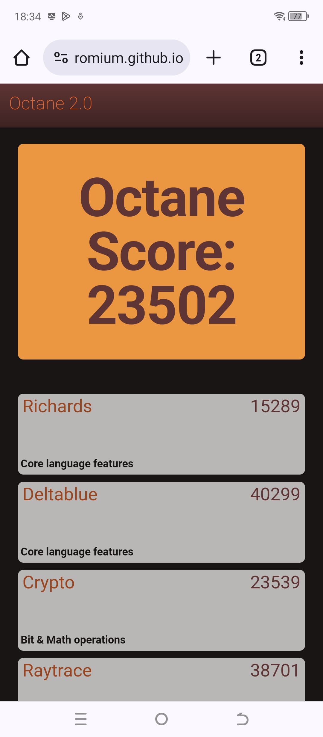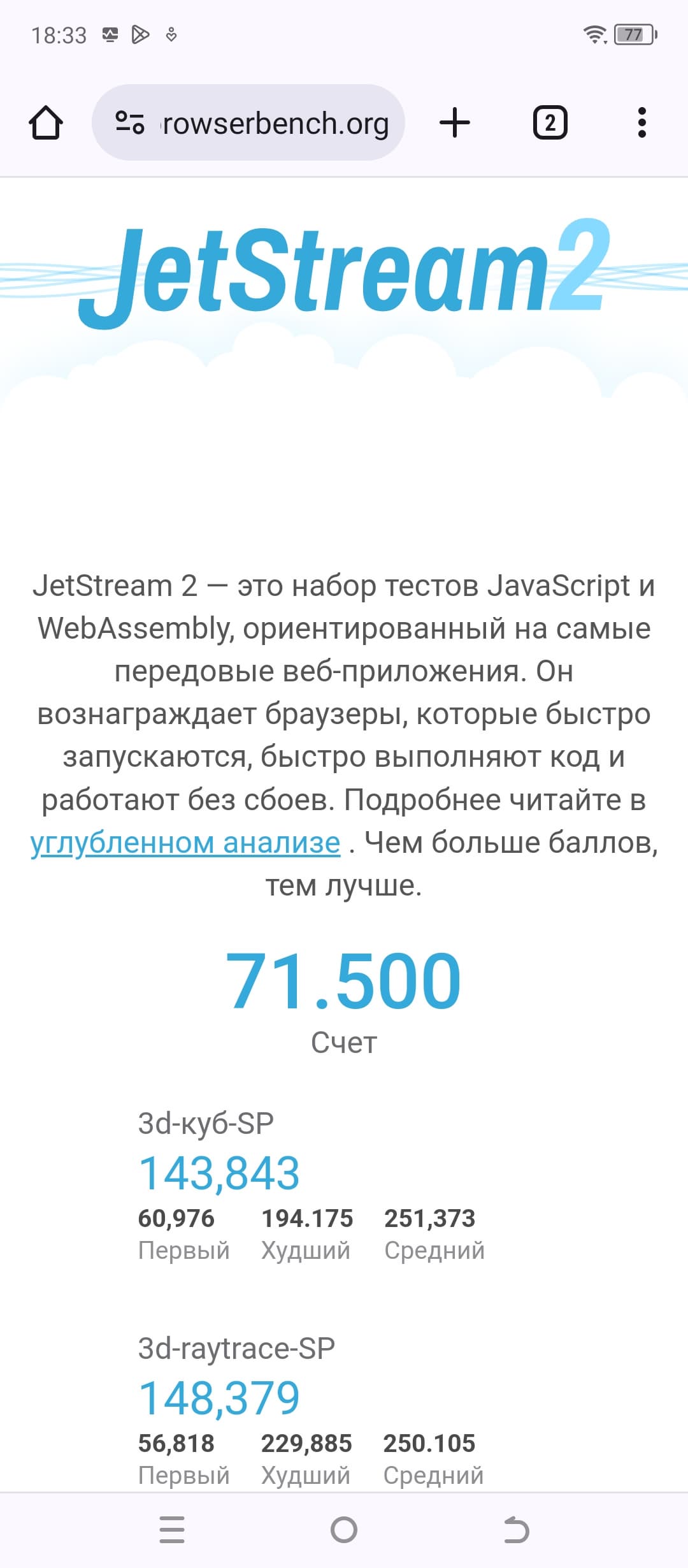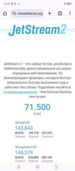 | Google Octane 2 (больше — лучше) | 23502 | 27796 | 29329 | 27070 | 19194 |