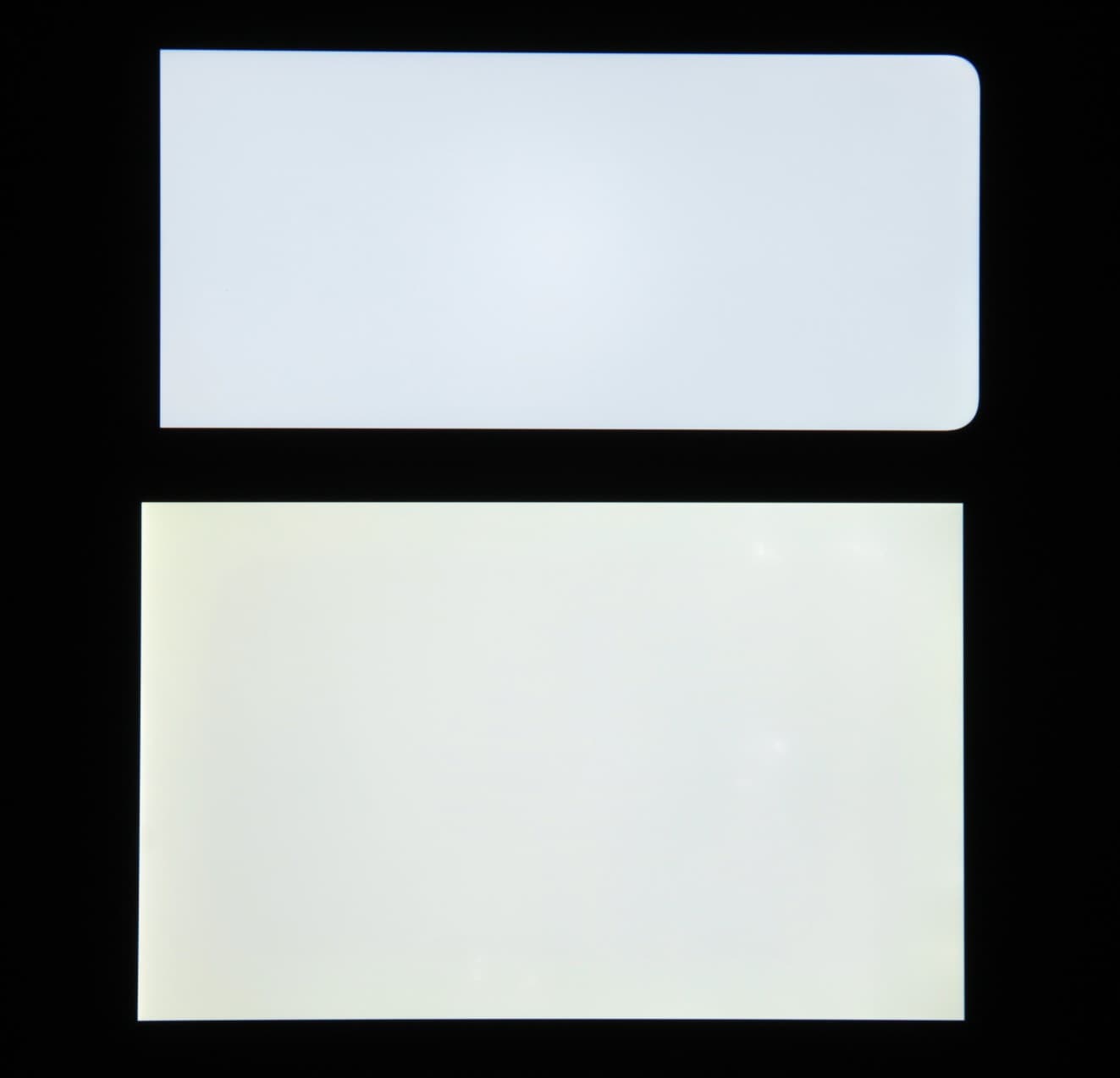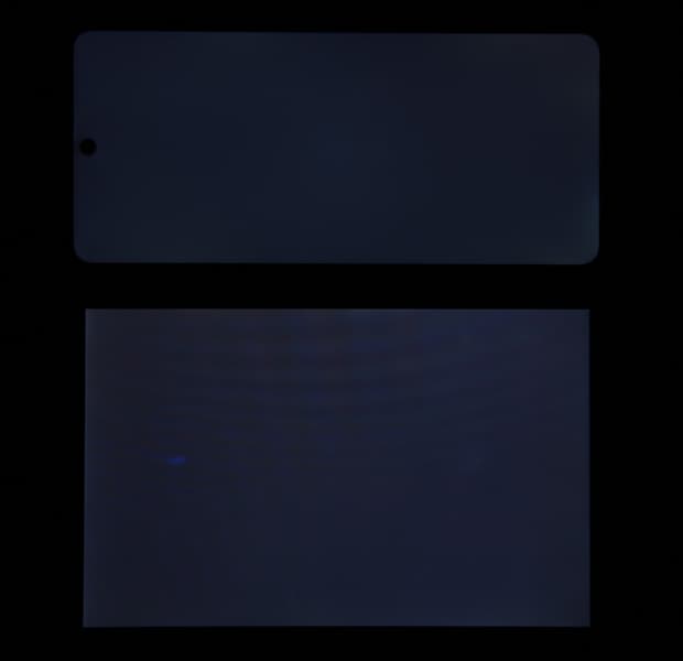 При перпендикулярном взгляде равномерность черного поля средняя (для наглядности яркость подсветки на смартфоне установлена на максимум):
