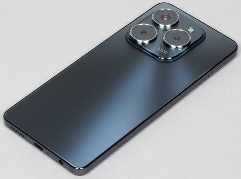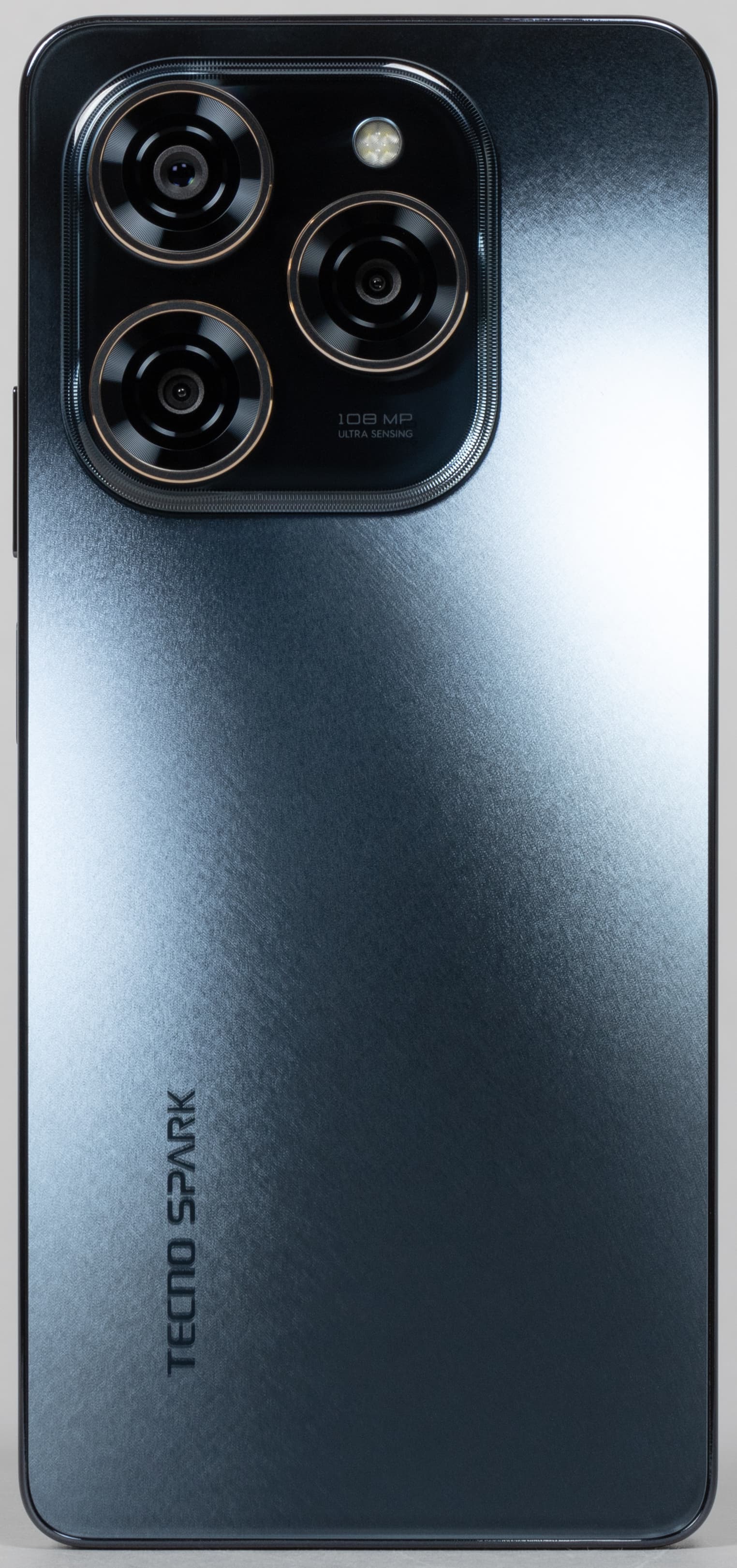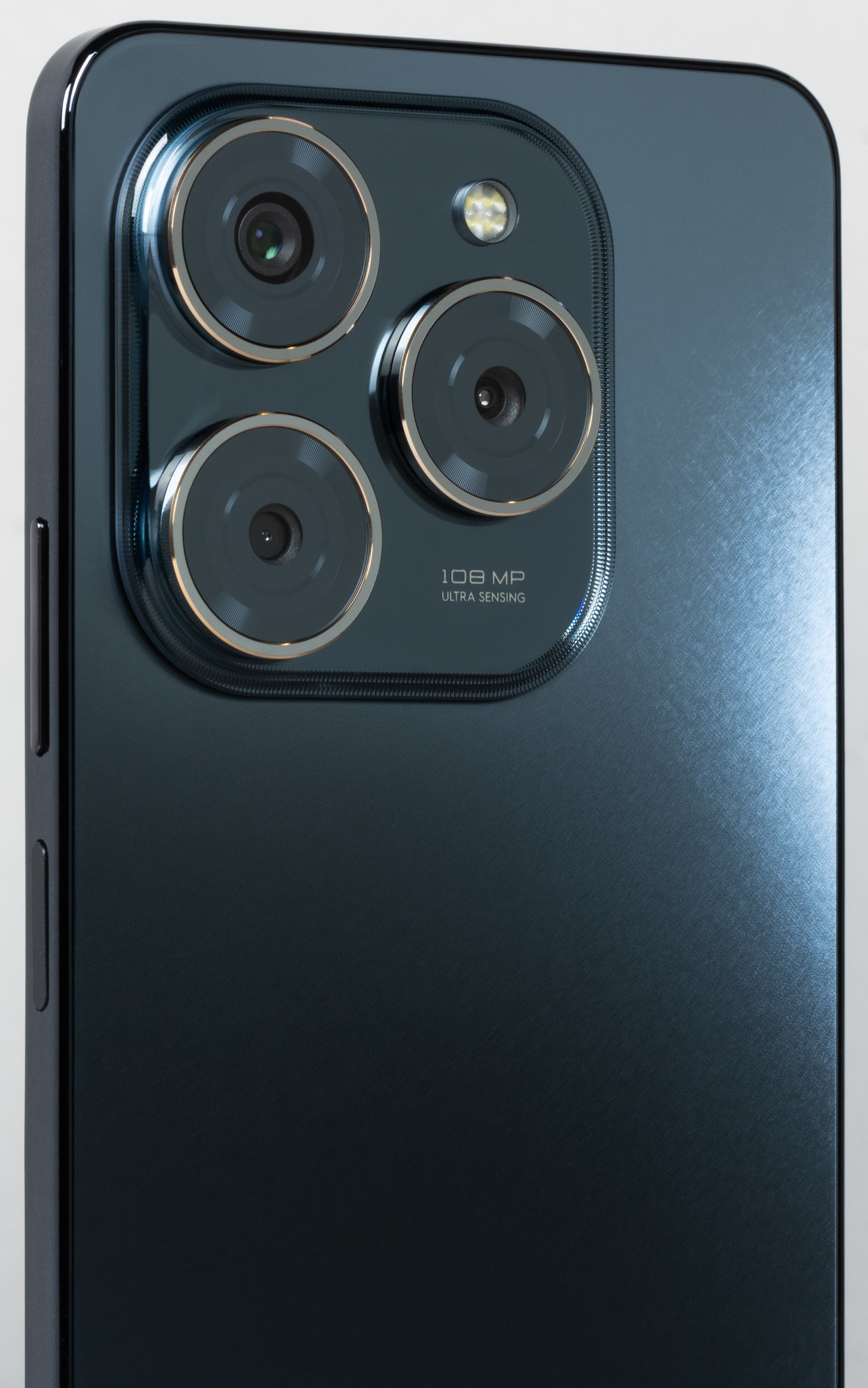 Сзади у Tecno Spark 20 Pro три круглых стеклянных окошка одинакового размера, но полноценная снимающая камера лишь одна, и еще есть простенький 2-мегапиксельный модуль для макросъемки. Основная камера оснащена сенсором 108 Мп (1/1,67″, 0,64 мкм) и объективом f/1,8. Имеется фазовый автофокус PDAF, оптического стабилизатора нет.
