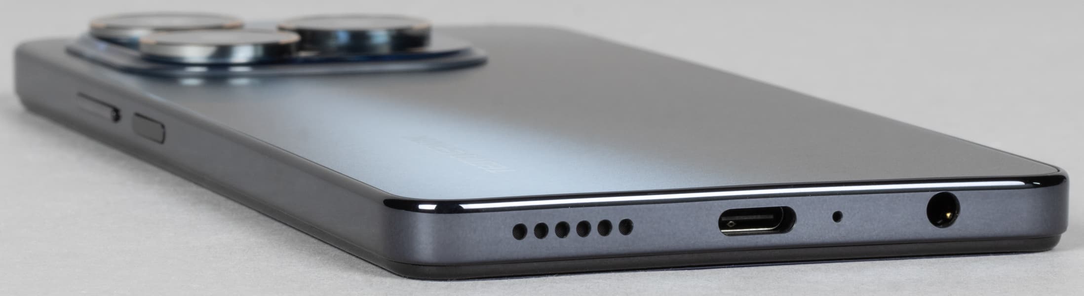 Снизу установлены основной динамик, а также разговорный микрофон, разъем USB Type-C и, что похвально, 3,5-миллиметровый аудиовыход для стандартного миниджека проводных наушников.