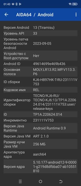 - SoC Mediatek Helio G99, 8 процессорных ядер (2×Cortex-A76 @2,2 ГГц + 6×Cortex-A55 @2,0 ГГц)