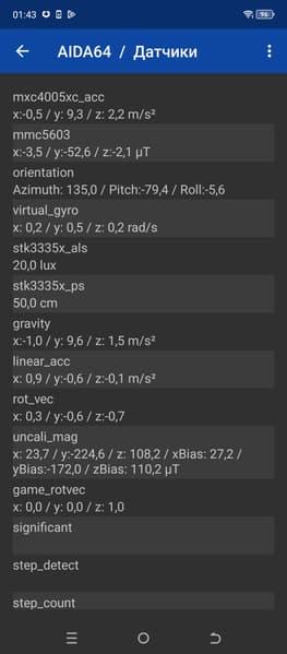 Голос собеседника в динамике громкий и вполне разборчивый. Вибромотор самый обычный, средний по мощности. Все необходимые встроенные датчики, вплоть до гироскопа, на месте.