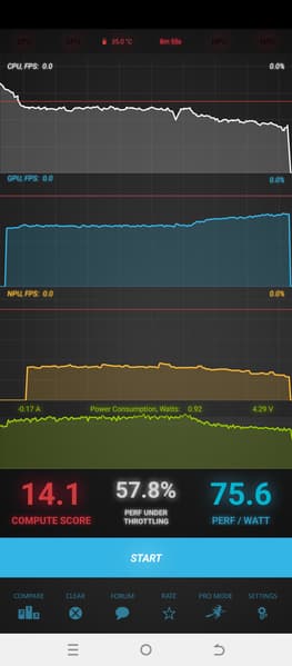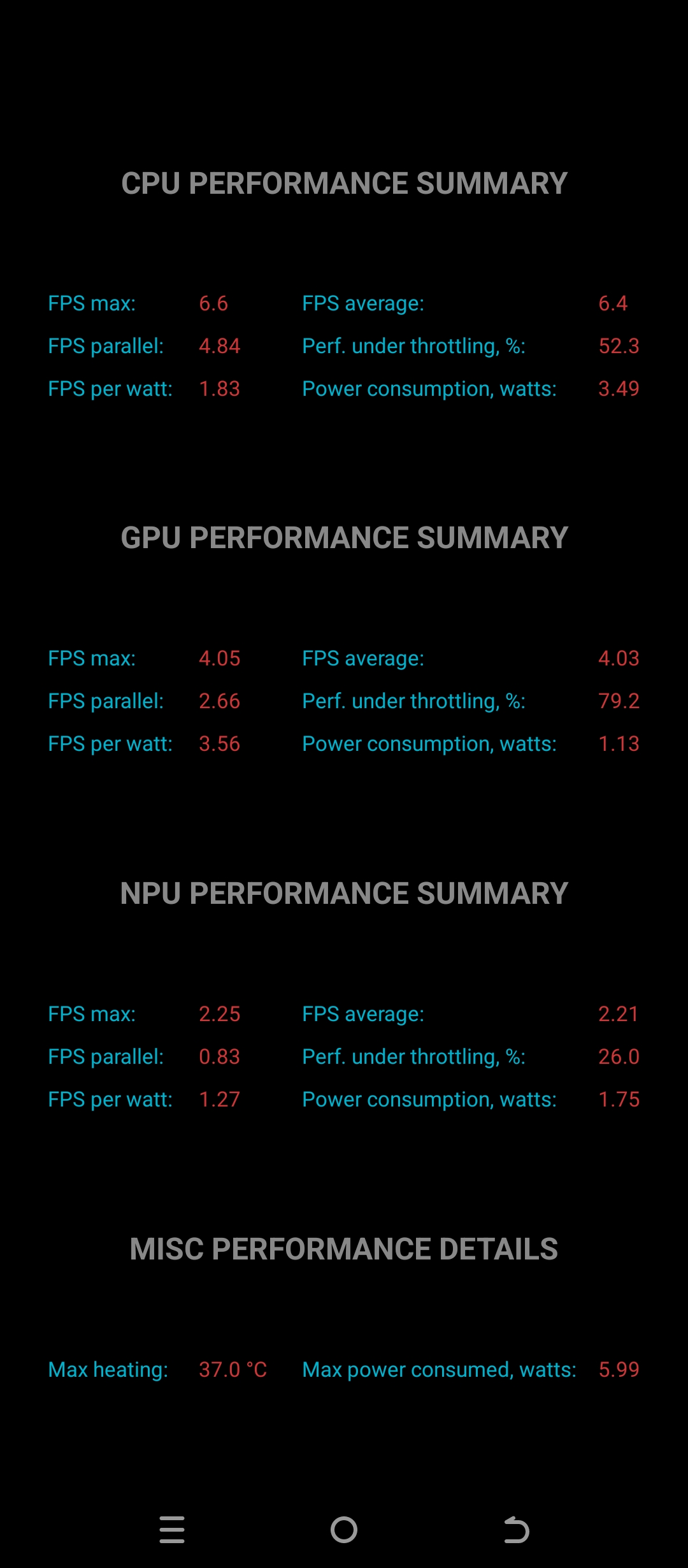 Тест на снижение производительности при нагреве мы проводим с помощью программы Burnout Benchmark, которая позволяет нагружать CPU, GPU и NPU: