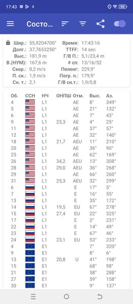 Одноканальный модуль спутниковой навигации работает с GPS, а также Глонасс, Galileo и BDS. Первые спутники при холодном старте обнаруживаются не молниеносно, но точность позиционирования не вызывает претензий.