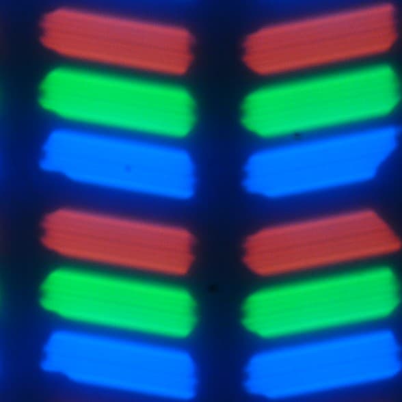 В данном смартфоне используется матрица типа IPS. Микрофотографии демонстрируют типичную для IPS структуру субпикселей: