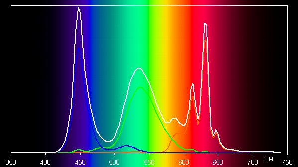 Спектры показывают, что светофильтры матрицы в умеренной степени подмешивают компоненты друг к другу: