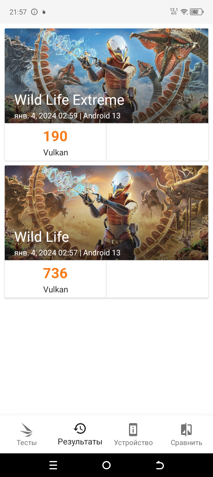 | 3DMark Wild Life Vulkan (больше — лучше) | 736 | 4505 | 4186 | 2450 | 1327 |