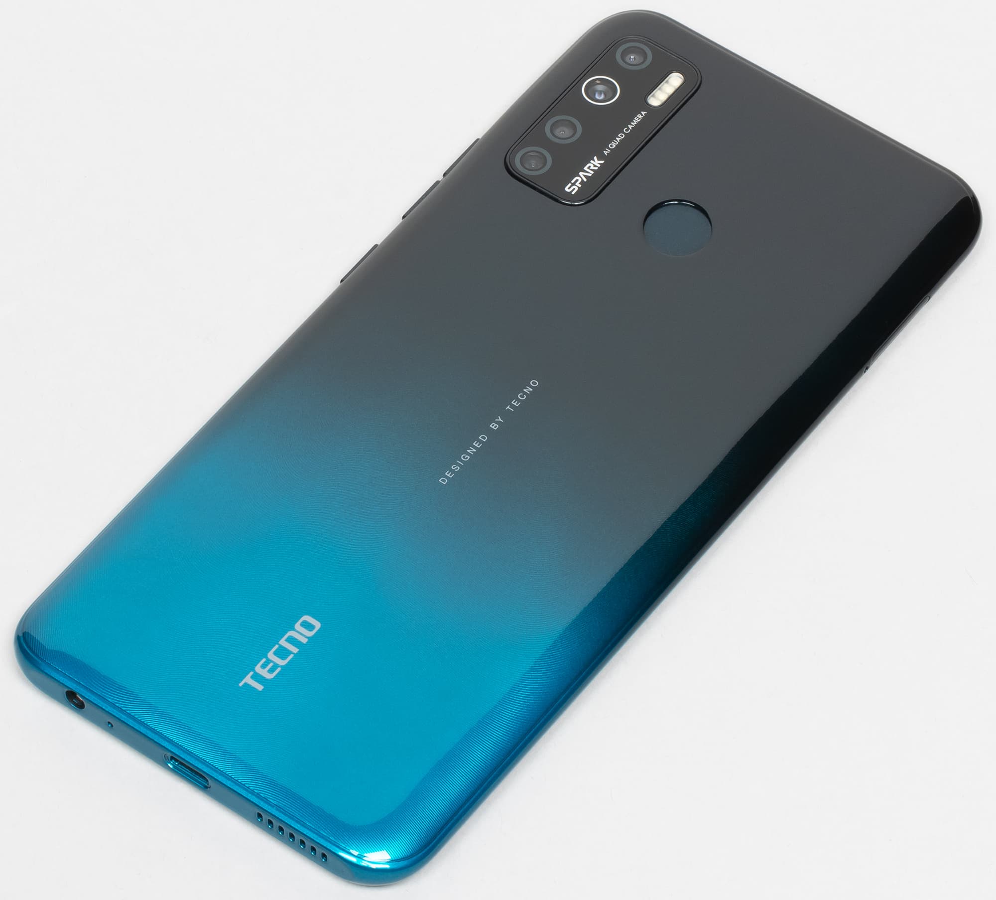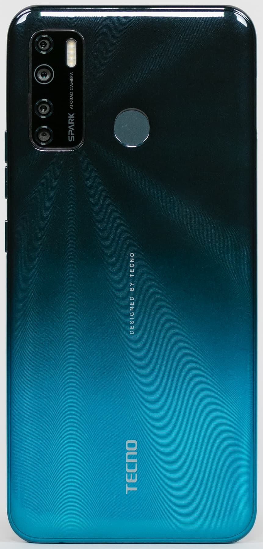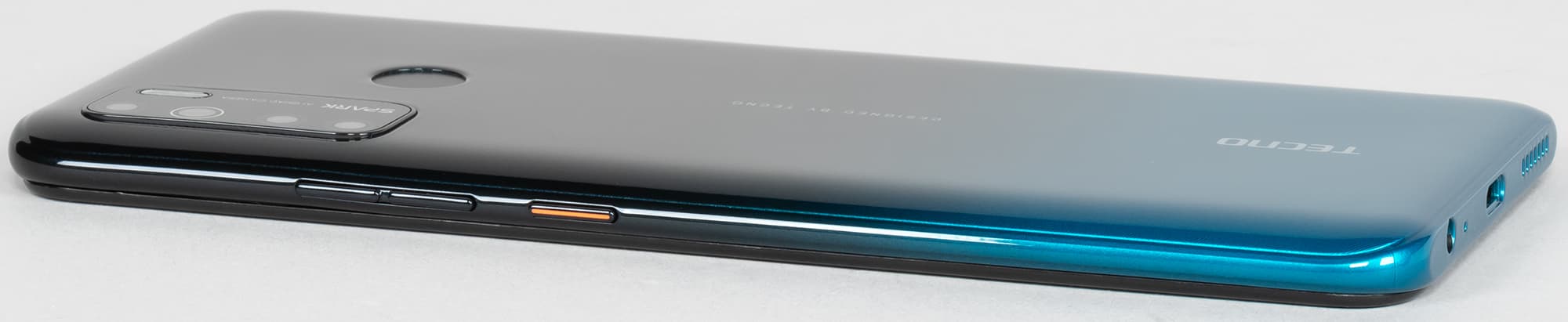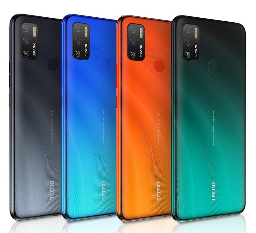 Смартфон Tecno Spark 5 выпускается в четырех цветах — зеленом, оранжевом, голубом и темно-сером (Ice Jadeite, Spark Orange, Vacation Blue, Misty Grey). Все варианты имеют градиент цвета и лакированное покрытие. Полноценной защиты от пыли и влаги корпус смартфона не получил.