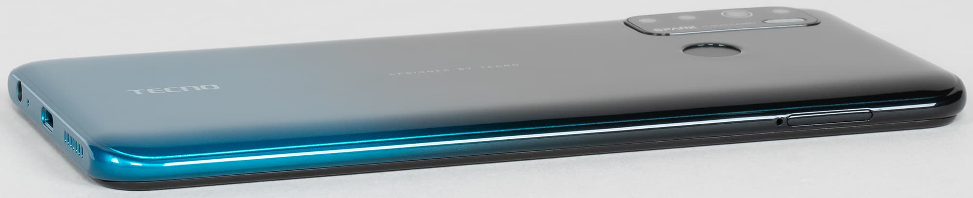 Tecno Spark 5 выглядит, пожалуй, наиболее ярко и привлекательно во всей актуальной линейке смартфонов производителя. Он, в принципе, и рассчитан на молодежную аудиторию, так что тут полное соответствие образа позиционированию. Стильный, яркий, модный, молодежный — все эпитеты подходят этому некрупному мобильному телефону с градиентным окрасом корпуса.