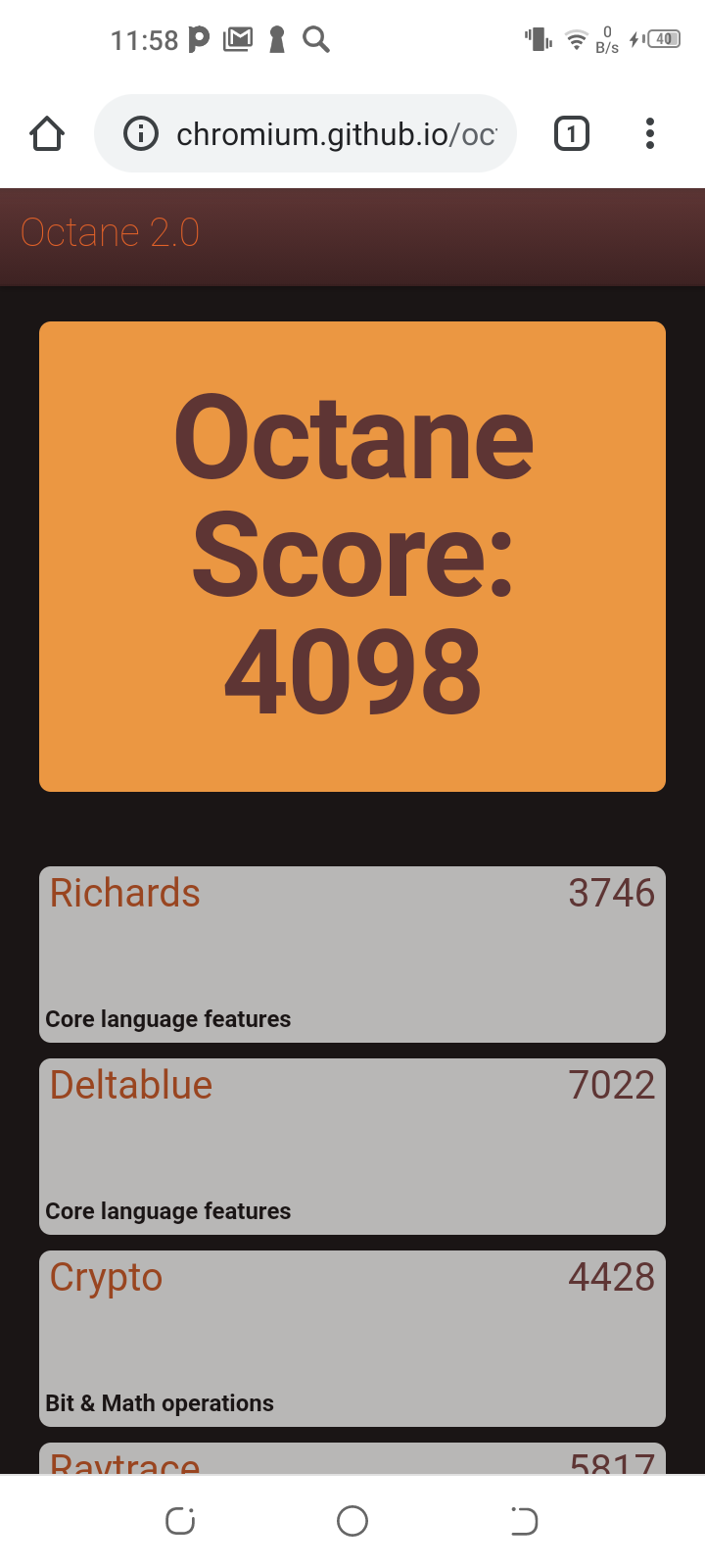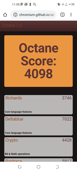 | Google Octane 2 (больше — лучше) | 4098 | 10381 | 8831 | 4204 | 3918 |