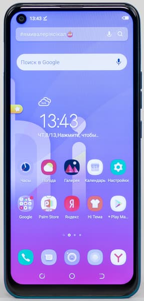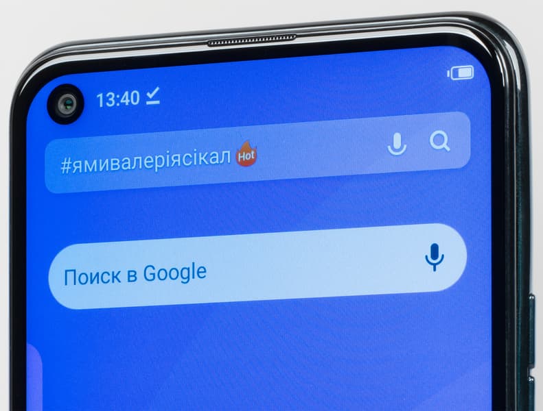 Для фронтальной камеры в матрице дисплея проделан круглый вырез. Пожалуй, он мог бы быть и поменьше: невооруженным глазом видно, насколько отверстие шире в диаметре, чем сам глазок камеры. Камера одна, собственной вспышки она не имеет. Зато не забыт столь полезный элемент, как светодиодный индикатор событий. Он довольно крупный, но светит мягким не раздражающим белым светом — только при выключенном экране.