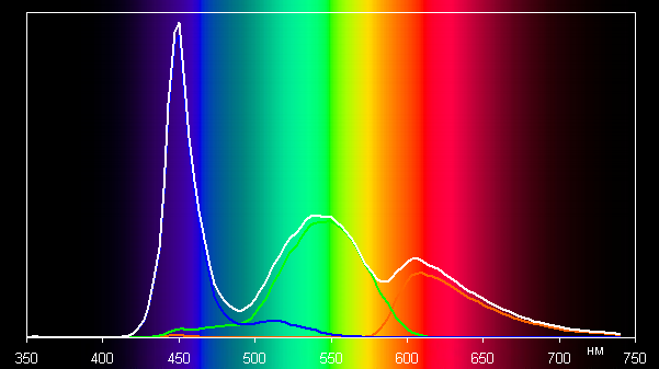 Спектры показывают, что светофильтры матрицы в умеренной степени подмешивают компоненты друг к другу: