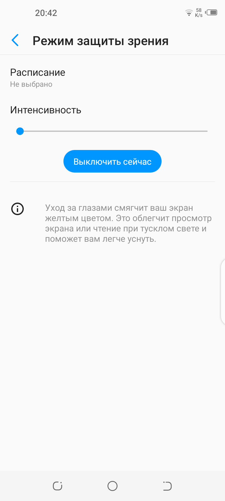 Конечно, никакой защиты зрения нет, есть только стремление маркетологов завлечь пользователя якобы заботой о нем. В принципе, яркий свет может приводить к нарушению суточного (циркадного) ритма (см. статью про iPad Pro с дисплеем 9,7 дюйма), но все решается подстройкой яркости до комфортного уровня, а искажать цветовой баланс, уменьшая вклад синего, нет абсолютно никакого смысла. К сожалению, этот режим нельзя использовать для коррекции цветовой температуры, так как даже на минимальном уровне снижения интенсивности синего цветовая температура равна 5500 К, что уже слишком низко. В итоге данная функция совсем бесполезная.