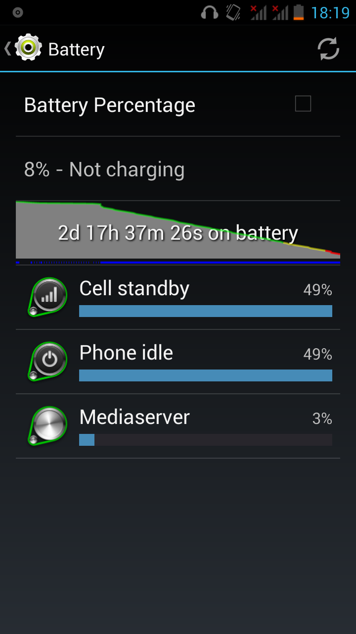 При тестировании Fly IQ451 нас удивила малая продолжительность работы этого смартфона в режиме чтения электронной книги (с постоянной подсветкой на уровне 100 кд/м²). Предположение, что дело может быть в проблемах единичного экземпляра, к сожалению, не подтвердилось: второй смартфон на платформе MT6589 с 5″ дисплеем продемонстрировал точно такой же результат. Приходится констатировать, что для достижения показателей смартфонов на основе MT6577/MT6575 c 4,3″ дисплеями их наследникам необходим аккумулятор емкостью 2500 мА·ч или даже больше.