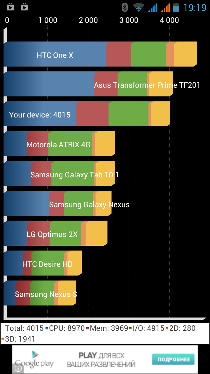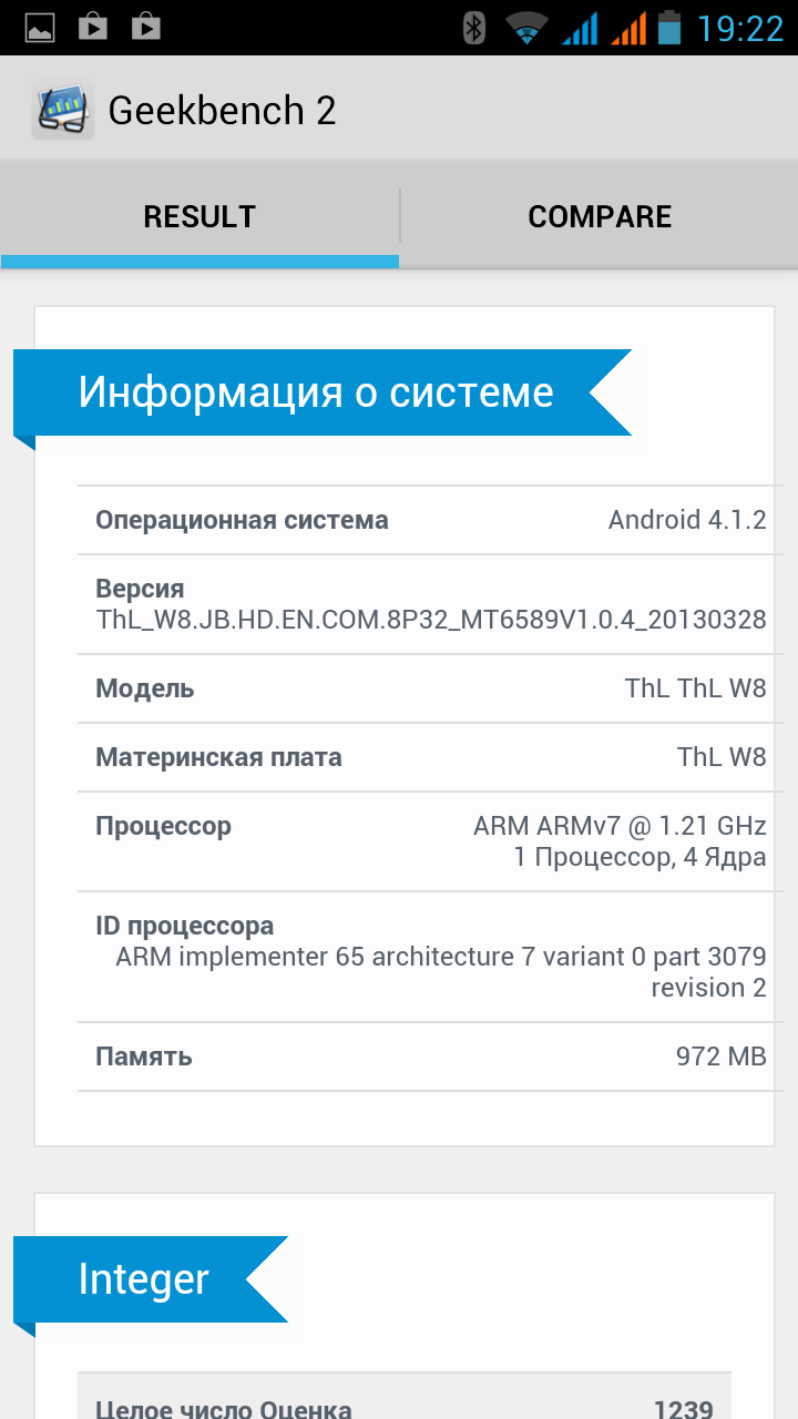 Если разработчики ThL W8 ничего не напутали ни в конструкции, ни в прошивке, то результаты тестов производительности героя обзора должны совпадать с таковыми у Fly IQ451. Оба смартфона построены на одной платформе, оснащены одинаковыми по диагонали и разрешению дисплеями и располагают 1 ГБ оперативной памяти.