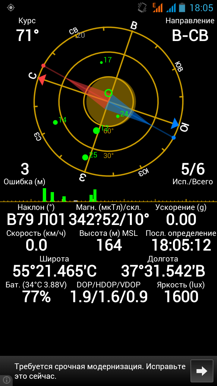 Приемник сигнала GPS в ThL W8 успешно определил местоположение смартфона. Холодный запуск занял продолжительное время, но в дальнейшем получение координат происходило быстрее. На помощь в этом нелегком деле приемнику в ThL W8 приходит технология A-GPS. Необходимо отметить, что магнитометр (компас) и гироскоп в ThL W8 работают из рук вон плохо. Первый практически не меняет своих показаний, как ни крути смартфон в руке и пространстве, у второго значения меняются скачкообразно и хаотически, выглядит это так, как будто коммуникатор все время трясут, не помогает даже калибровка.