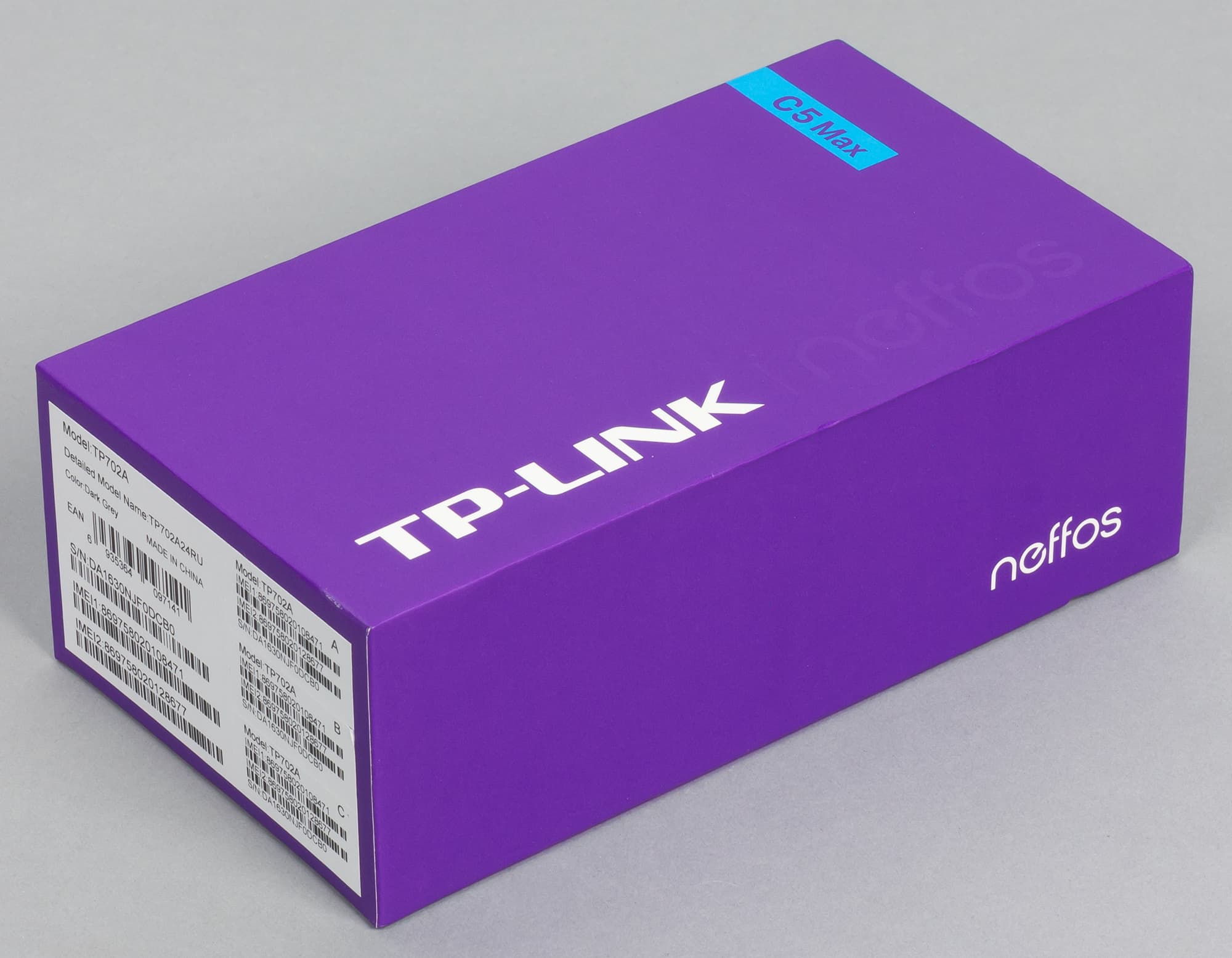 TP-Link Neffos C5 Max поступает в продажу в довольно ярко оформленной, но при этом приятной на вид упаковке. Коробка, правда, крупнее, чем того требует объем содержимого — не столь уж широк комплект поставляемых с устройством аксессуаров.