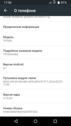 - Операционная система Android 5.1