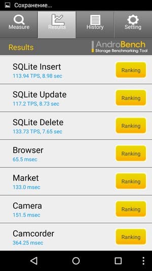 Результаты теста AndroBench на скорость работы с памятью: