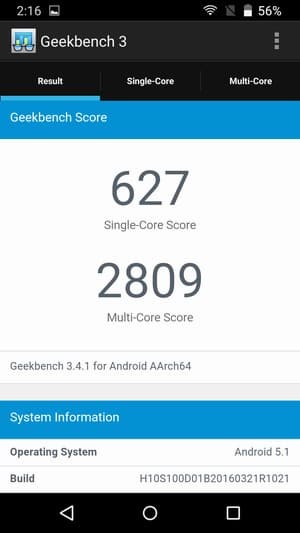 Возможности SoC MT6753 хорошо изучены, платформа не новая и далеко не из мощных. На фоне современных среднеуровневых SoC MT6755 (Helio P10) и Snapdragon 650/652, гораздо более интересных по всем параметрам, аппаратная основа героя обзора уже не выглядит столь привлекательно, как год назад. Теперь уровень производительности MT6753 опустился ниже среднего, данная платформа примерно сравнима с Qualcomm Snapdragon 615.