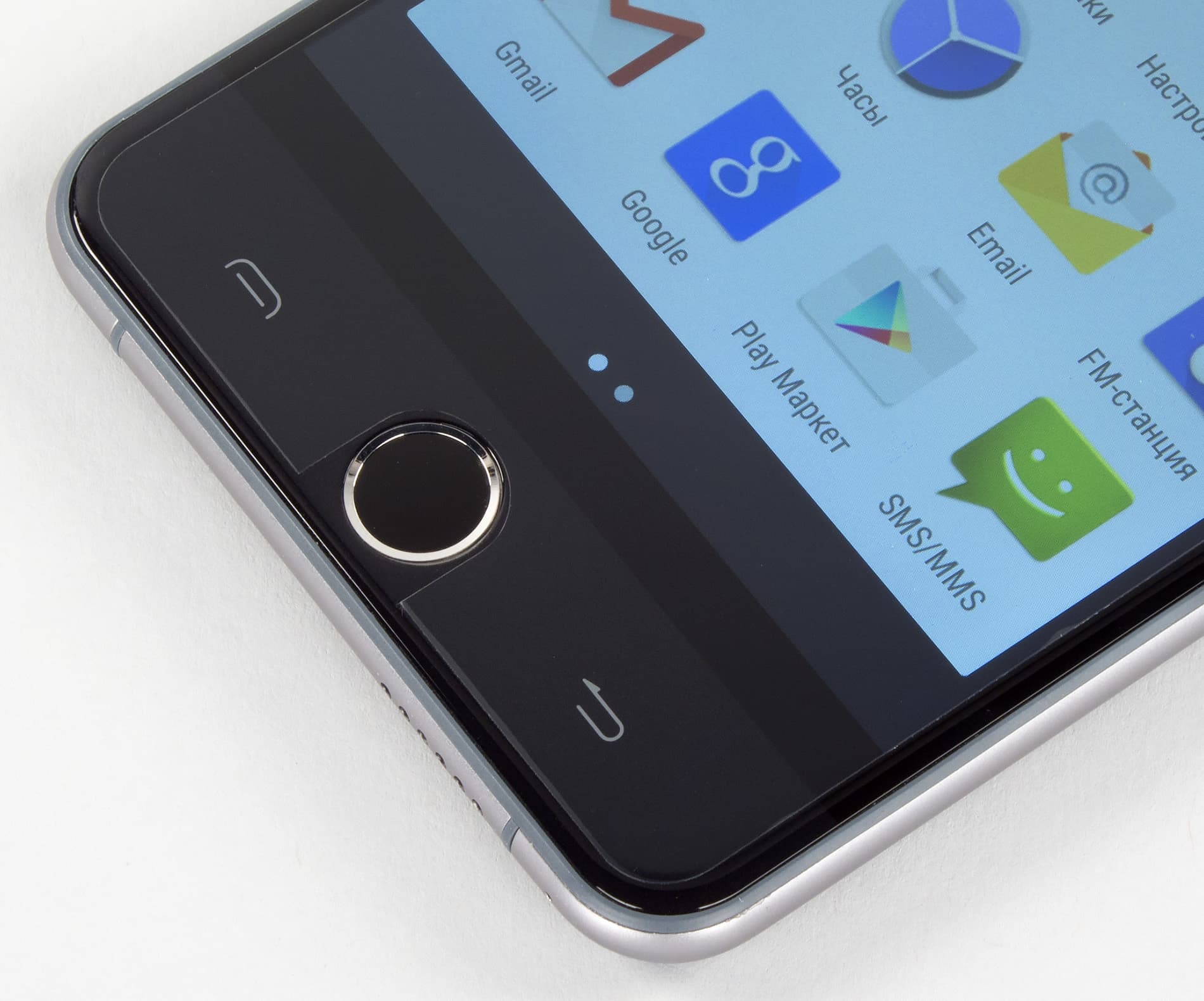 Особенно сильно сходство подчеркивают несколько наиболее заметных деталей: чуть выпуклое, закругленное по бокам защитное стекло экрана, металлическая рамка с закругленными краями и знакомая круглая кнопка со встроенным сканером отпечатков пальцев — ну как тут не заметить явного заимствования дизайна?