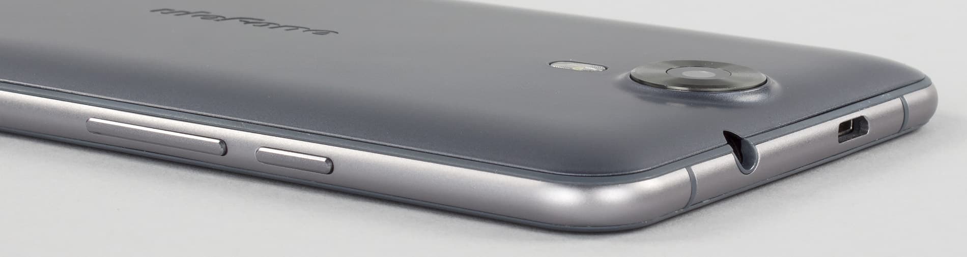 Универсальный разъем Micro-USB размещен на верхнем торце, аудиовыход для наушников 3,5 мм врезан сюда же. Расположены они не слишком близко друг к другу, и вряд ли пользователь ощутит какие-либо неудобства при одновременном подключении обоих штекеров. В качестве приятного бонуса разъем Micro-USB здесь еще и поддерживает режим подключения внешних устройств (USB OTG), так что через соответствующий переходник можно подключить флэш-накопитель и считывать информацию прямо с него. Никаких заглушек на своих разъемах смартфон не имеет, так как не оборудован защитой от воды и грязи. Крепления для ремешка также нет.