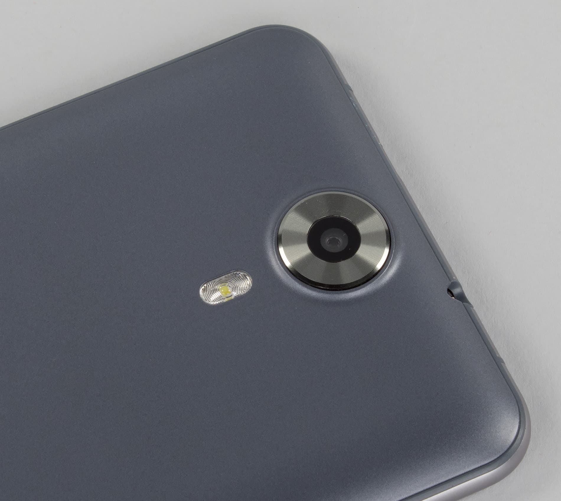 Отличия составляют лишь некоторые детали в задней части устройства: сама задняя поверхность не совсем плоская, а немного сужающаяся к краям, да к тому же некрасивый крупный модуль камеры заметно портит весь вид. Некрасивый он потому, что малюсенькое окошко с оптикой зачем-то оказалось обрамлено широченным грубым металлическим ободом с кольцевыми насечками по всей поверхности. Этот элемент выглядит словно какая-то незаконченная металлическая болванка с завода, случайно врезанная в пластик корпуса. К тому же она еще и заметно выпирает за пределы поверхности, даже несмотря на то, что сам корпус имеет бо́льшую толщину, чем тот же iPhone 6 Plus. Кольцевые канавки мгновенно забиваются жиром и грязью, этот элемент постоянно выглядит неопрятно.