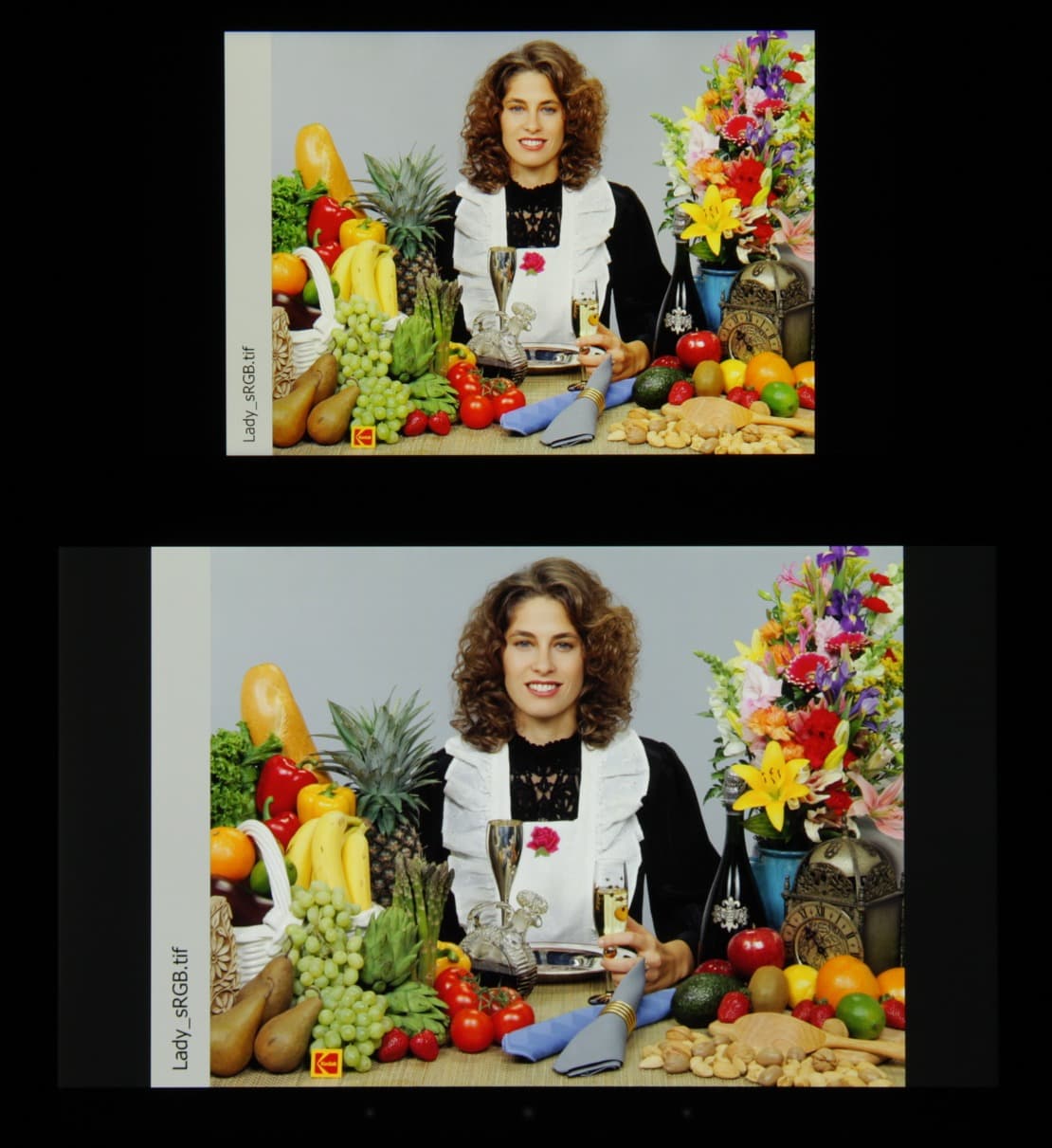 Отметим хорошую равномерность яркости и цветового тона белого поля. И тестовая картинка: