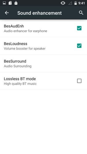 Для управления качеством звучания имеется возможность задействовать знакомые усилитель громкости динамика BesLoudness и систему улучшения звука для наушников BesAudEnh. Для воспроизведения мелодий в смартфоне используется штатный аудиоплеер с возможностью выбора из нескольких предустановленных значений эквалайзера. В штатном плеере предусмотрен режим проигрывания lossless-форматов.