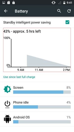 На фирменный интерфейс ОС Android производитель смартфона практически никак не повлиял, лишь добавил кое-какие улучшения вроде возможности одним нажатием удалить все приложения в списке последних открытых программ. Но на этом все улучшения и заканчиваются. Например, в пятой версии Android ухудшилось отображение работы с батареей — из системного трея пропала возможность отображения оставшегося уровня заряда в процентах. Соответственно, и в китайских смартфонах на Android 5.0 без дополнительных оболочек стало невозможно вывести отображение заряда в процентах в верхнюю системную строчку. Чтобы посмотреть эту информацию, необходимо дважды сдвинуть вниз панель уведомлений, или вообще идти через меню настроек в раздел о батарее, что совершенно неудобно. Кстати, и в самом этом разделе произошли изменения: теперь здесь нельзя увидеть точное время, прошедшее с момента последней зарядки — в Google решили, что эта информация для пользователя лишняя. Соответственно, не собираются что-то менять в этом направлении и производители смартфонов, которые не утруждают себя установкой альтернативных пользовательских интерфейсов.