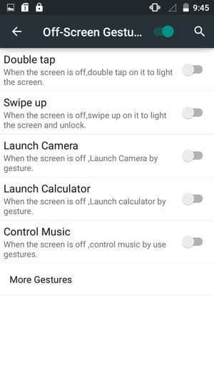 Добавлена также поддержка управления жестами, все настройки по работе с жестами выделены в отдельный раздел меню. Сюда вошли как привычные двойное постукивание по стеклу, или разнообразные переворачивания и накрывания ладонью, так и разнообразные пассы в виде значков и букв, с помощью которых можно вызвать отдельные приложения и программы (например, плеер или камеру).