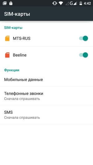 Смартфон поддерживает работу с двумя SIM-картами, и в целом работа с ними в меню организована по знакомому принципу: можно любую из SIM-карт назначить основной для организации голосовых звонков, передачи данных или отправки SMS-сообщений; при наборе номера также можно выбрать желаемую карту в контекстном подменю. С сетями 3G/4G может работать SIM-карта в любом слоте, однако одновременно в этом режиме может функционировать лишь одна из карт. Для смены назначений слотов карточки менять местами не требуется — это можно сделать прямо из меню телефона. Работа с двумя SIM-картами организована по привычному стандарту Dual SIM Dual Standby, когда обе карты могут находиться в активном режиме ожидания, но одновременно работать не могут — радиомодуль здесь только один.