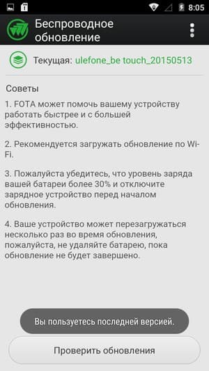Ulefone Be Touch сразу работает на программной платформе Google Android свежей версии 5.0 Lollipop. Поддерживаются обновления прошивки «по воздуху» (ОТА). Производитель не устанавливал никаких собственных альтернативных пользовательских интерфейсов, так что организация всех меню, рабочих столов и функциональность панели уведомлений с меню быстрых настроек здесь точно такие же, как в «стоковой» Google Android ОС. В целом большинство возможностей ОС от Google, ее внешний вид с концепцией «Material Design», строение всех разделов, шторка уведомлений, меню последних открытых программ, интерактивные плитки с уведомлениями, все выглядит точно так, как задумано самими создателями системы Android.